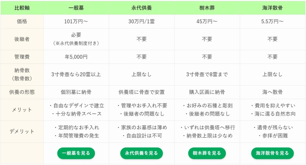 一般墓・永代供養・樹木葬・海洋散骨を比較‼