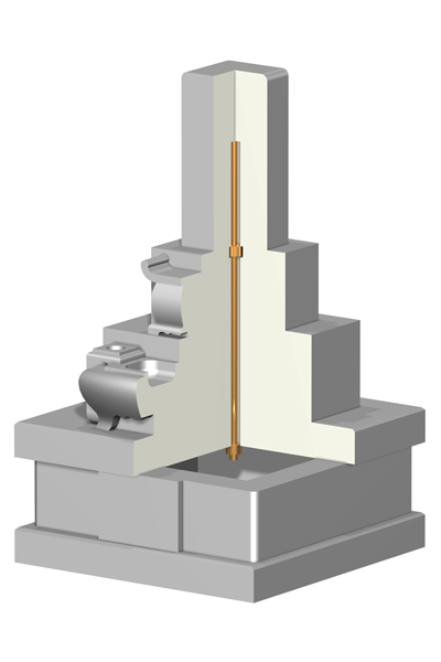 太さ30mmのステンレス製耐震棒をお墓の上部から納骨台まで通すことで耐震性が向上します。